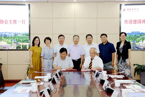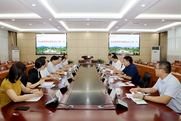 7月9日下午,德国神经康复协会主席Thomas Mokrusch教授一行在德中医学培训中心主任李巍的带领下到访我校。副院长孙宏伟出席洽谈会,并与Thomas Mokrusch签署合作备忘录。