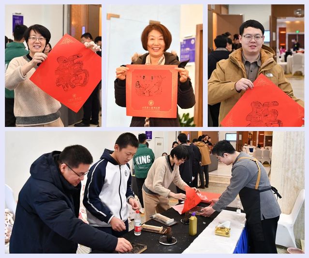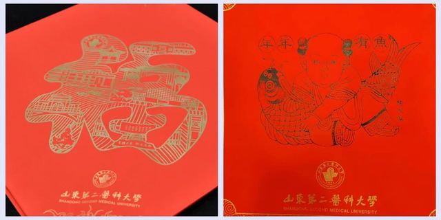 互动环节为联谊会增加了热烈的气氛,学校为参加联谊活动的校友精心准备了文创产品,印有“山东第二医科大学”logo帆布包、纪念校徽以及专属福字等。人文艺术教育中心的老师现场示范拓福的制作方法,与校友们一起完成拓印。这独具匠心的“山二医的祝福”,巧妙地运用了国家级非遗项目“杨家埠木版年画”的刻版工艺,将校训、学校精神以及标志性建筑等元素镌刻进“福”字里,让校友们在感受传统文化魅力的同时,也深深体会到母校的新春祝福。