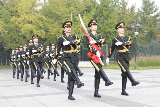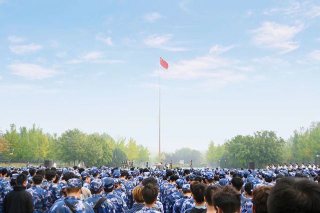 上午7时,师生整齐列队,庄严肃立。国旗护卫队迈着铿锵有力的步伐,护送国旗走向升旗台。在雄壮的《义勇军进行曲》中,五星红旗冉冉升起,迎风飘扬。全体师生注视国旗,高唱国歌,共同祝愿伟大祖国繁荣昌盛、人民幸福安康。
