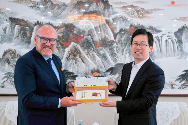 10月23日,美国东北州立大学校长Rodney Hanley一行来校访问,学校党委书记张建华会见客人并座谈,副校长张忠、李士保参加活动。