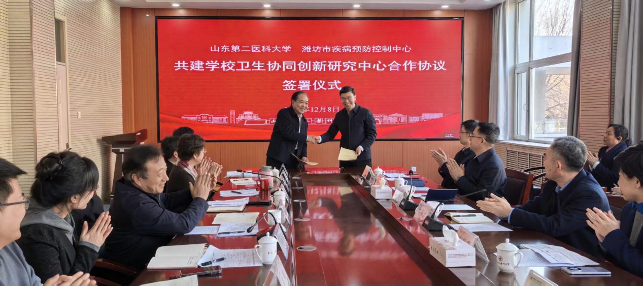 潍坊市疾控中心副主任陈伟对《联合建设省级区域公共卫生中心措施分解表》进行了解读,明确了任务分工与推进路径。随后,双方共同签署了《共建学校卫生协同创新研究中心合作协议》。