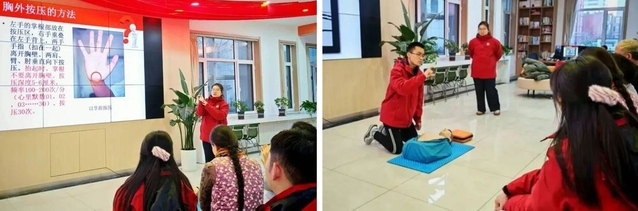 12月2日,志愿服务队走进潍坊山水水泥、大洋泊车两家企业,把急救课堂搬到车间一线。指导教师姚福旺用真实案例拆解CPR按压要领、AED使用流程,学生志愿者一对一手把手指导实操,纠正按压角度、电极片粘贴等细节。“学会这些技能,关键时刻能救自己、帮他人!”职工们收获满满。
