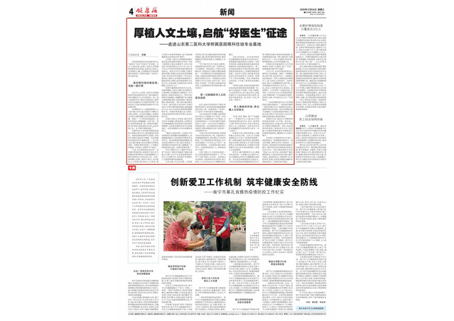 12月24日,《健康报》第4版以《厚植人文土壤,启航“好医生”征途》为题,报道我校附属医院眼科住培专业基地在住院医师规范化培训方面的特色做法。