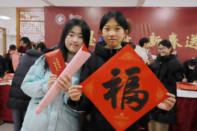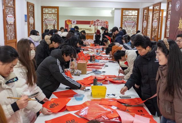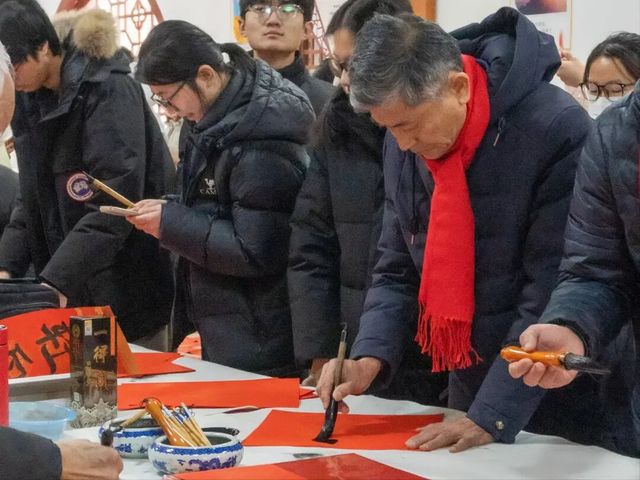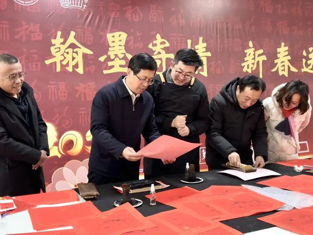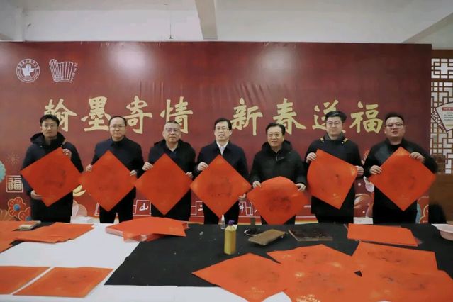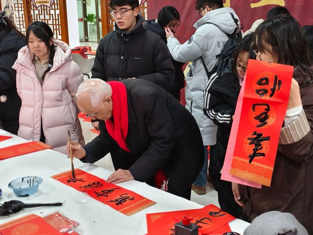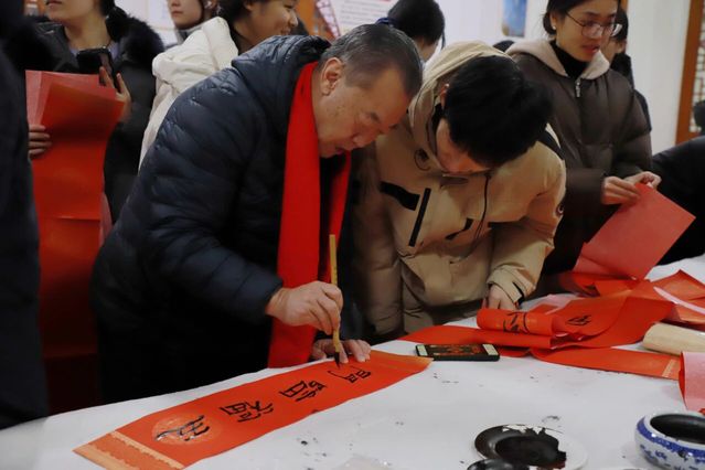 翰墨寄深情,新春送福至。为弘扬中华优秀传统文化,发挥孔子学堂文化育人功能,营造喜庆温馨的校园新春氛围,1月11日,“翰墨寄情 新春送福”活动在乐道济世书院举办。党委书记张建华,副校长李士保、田玉胜出席活动。