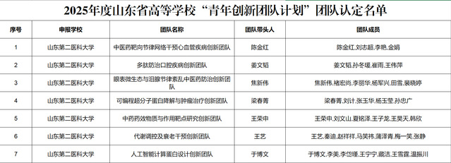 近日,山东省教育厅公布了2025年度高校“青年创新团队发展计划”认定名单,我校7个创新团队成功入选。加上此前已获批的8个山东省卫生健康科创团队,我校本年度新增省级青年科研创新团队共计15个,在科研梯队建设与创新能力提升方面实现了新突破。