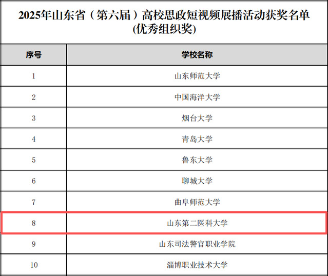 近日,2025年山东省(第六届)高校思政短视频展播活动获奖结果公布,我校共斩获八个奖项,其中张军桥烈士事迹专题片《生命至上》获得教师组一等奖,学校荣获“优秀组织奖”,展现了学校扎实有效的育人成果和与时俱进的育人理念。