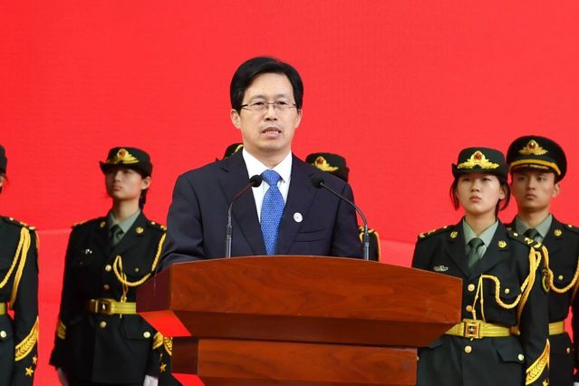 张建华在讲话中指出,国旗是国家的神圣象征与标志,获赠的这面国旗与张军桥烈士紧密相连,是爱国主义教育最生动、最珍贵的教材。他号召全校师生医护员工,要厚植家国情怀,做信仰坚定的爱国者。始终尊崇、爱护、捍卫国旗,将对祖国的炽热情感、对英雄的崇高敬仰,熔铸为坚定不移的理想信念,以切实行动赓续红色血脉、传承英雄精神;要锤炼过硬本领,做乐道济世的传承者。将“乐道 济世”校训与医者情怀融入血脉,以精益求精的专业态度和勇于担当的奉献精神守护生命之光,用扎实学识与仁爱之心诠释医者初心,像军桥烈士那样,成为“乐道之人”,践行“济世之为”;要勇担时代使命,做强国复兴的奋斗者。自觉将个人成长融入国家发展与民族复兴的壮阔征程,将英烈精神转化为干事创业的磅礴动力。主动服务国家卫生健康事业发展,以实际行动为强国建设、民族复兴贡献智慧与力量。他强调,要深入开展军桥烈士事迹宣讲,让天安门国旗与“军桥精神”汇聚成激励广大师生勇毅前行的磅礴伟力;持续拓展“军桥心跳行动”志愿服务,推进急救科普进学校、进社区、进企业;着力创新思政教育载体,让英雄形象更加鲜活,让榜样力量可知可感、可学可做。