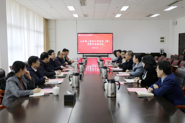 交流座谈中,张建华对各高校一直以来对山东第二医科大学建设发展给予的关心支持表示感谢,表示各高校近年来坚持问题导向,改革发展,争先进位,敢为人先,发展势头强劲,在深化内部治理、推动综合改革、完善科技创新体系、优化财务运行及高质量发展等方面创造出了成功的路径经验,值得深入学习借鉴。希望通过此次交流,广泛学习典型经验做法,找准切入点,建立新路径,营造新生态,坚持内涵建设、特色发展、开放办学,在新赛道不断创造新成绩,与各高校携手,共同服务国家战略和地方经济社会高质量发展。刘传勇介绍了学校发展状况、机遇挑战及发展思路,希望与各高校加强交流、互学互鉴,在推进人才培养、科技创新、平台共建、资源共享等领域开展更深层次、更富成效的务实合作。